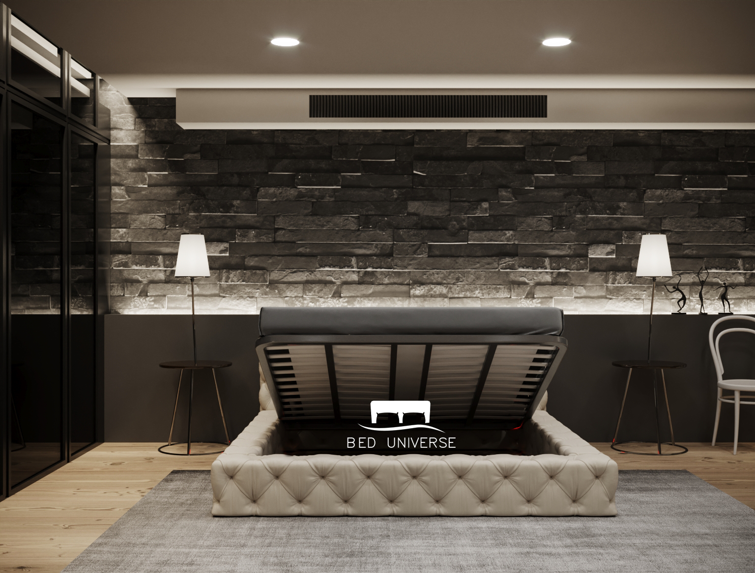 Ferro Panel Linear Stripe Panel Divan Ottoman Storage Bed