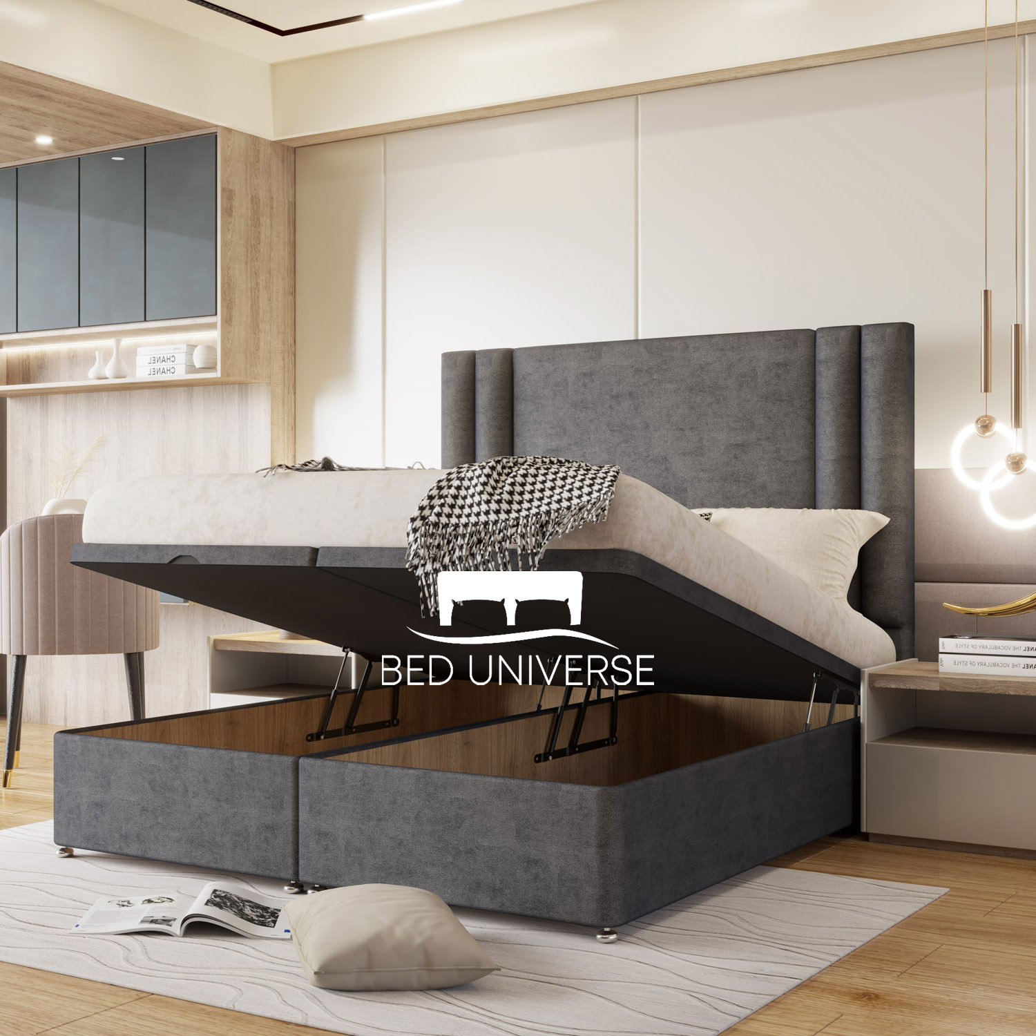 Sandy Winged Divan Ottoman Storage Bed